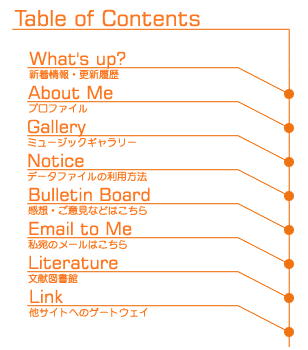 Some MIDI files and MP3 (MPEG1 Layer 3) audio files I've created are exhibited in this site. By the way, I am 'Samurai'. The Samurai only speaks Samuraise. All of documents are written in 'Samuraise', and it has not been translated into English yet. Should you desire to visit our site, please use 'Samuraise-English Translation Service.' Thank you. This page has been accessed 286880 times since Oct. 8th,1997.
